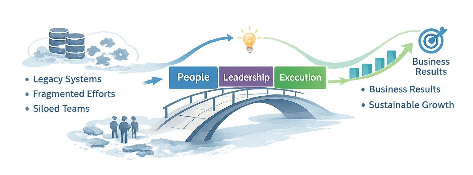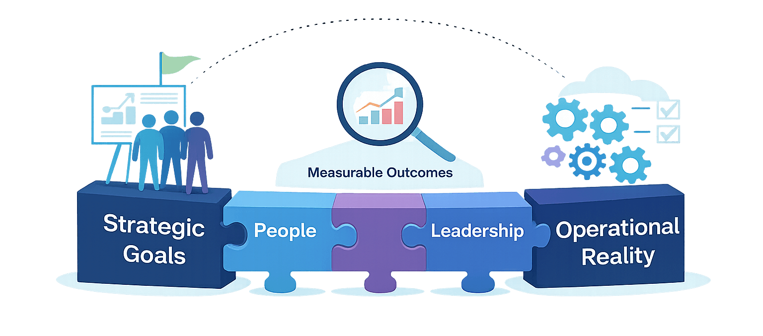 My focus is to bridge that gap: aligning people, technology, and accountability to deliver structured, measurable results.